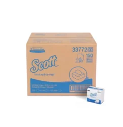 Scott กระดาษชำระแบบแผ่นพับ ไฮจินิก บาธรูม หนา 2 ชั้น 9.6 x 18.8 ซม. 150 แผ่น x 100
