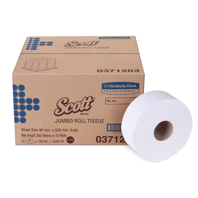 Scott กระดาษชำระม้วนใหญ่ หนา 2 ชั้น แผ่นกว้าง 9 ซม. 300 เมตร x 12